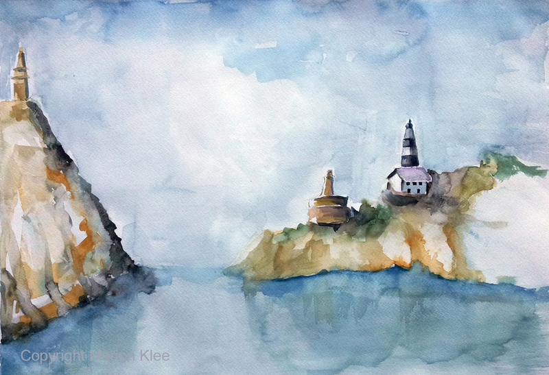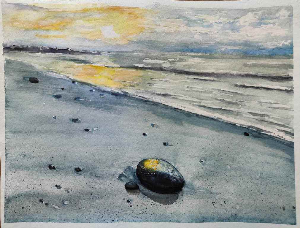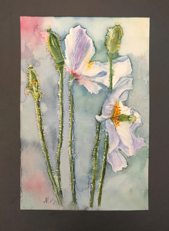 Nass in nass mit Pinsel in Kombination mit Aquarellstiften entstehen meine Aquarelle.