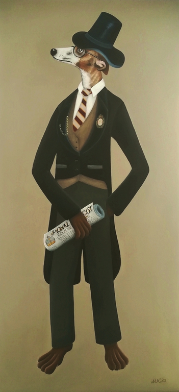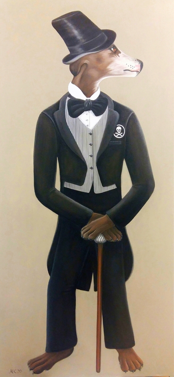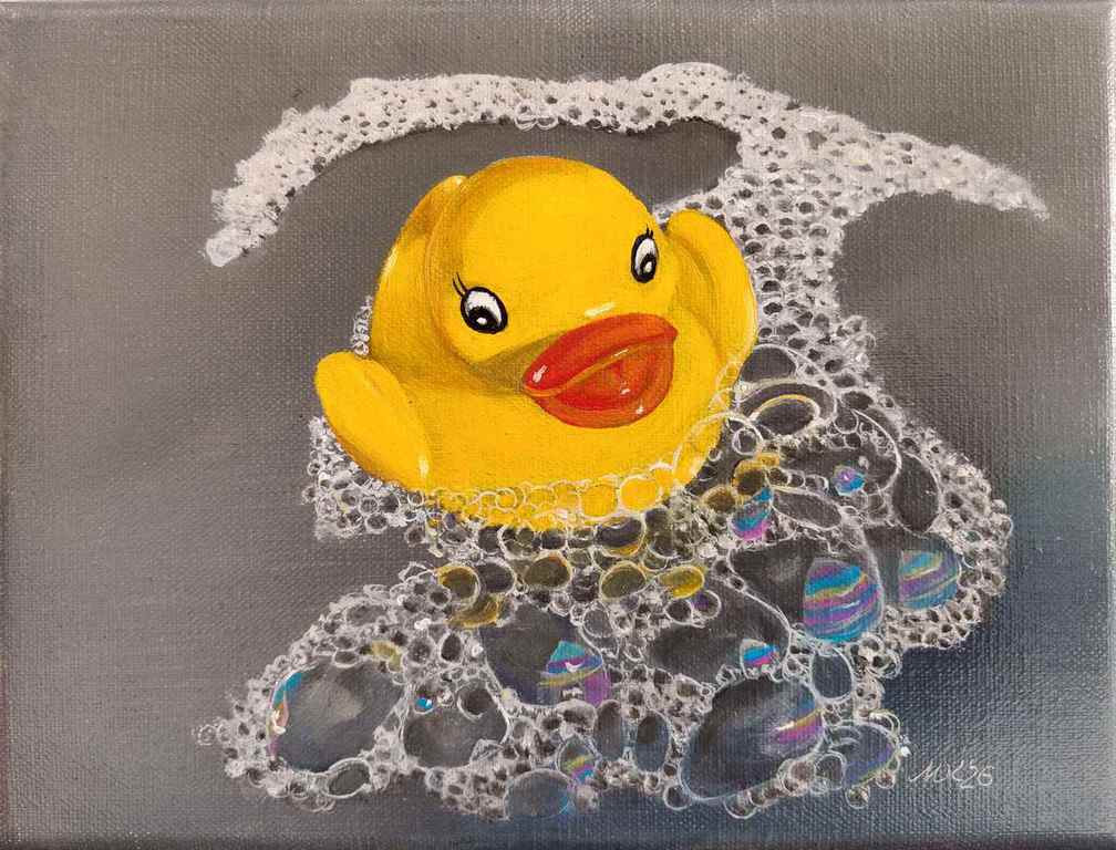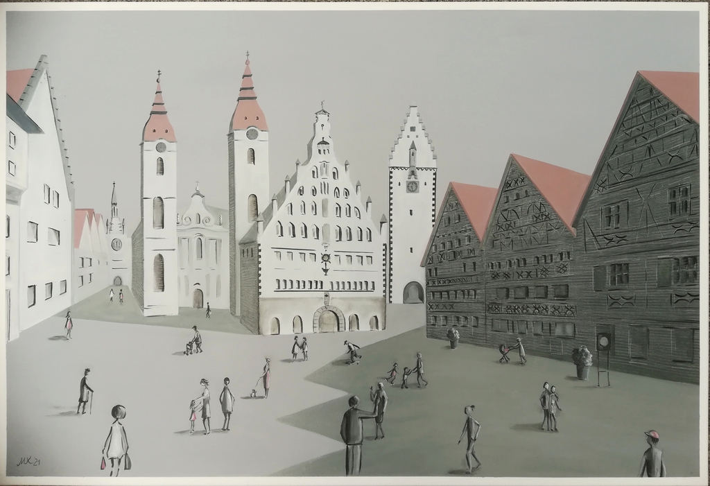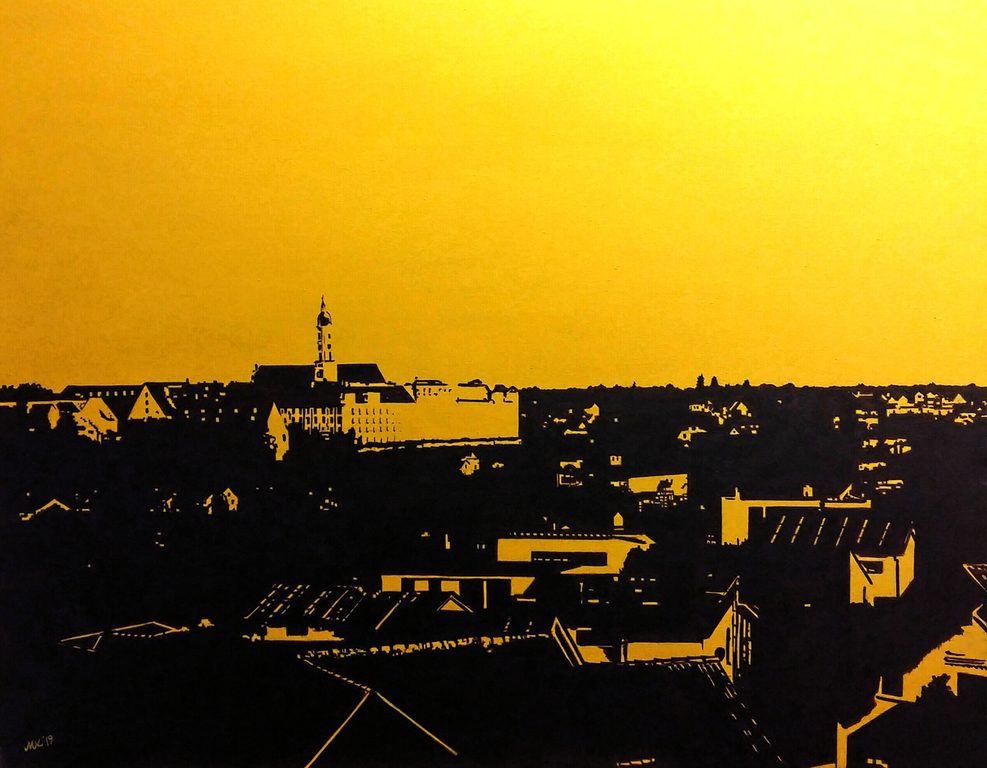 Eine vorgrundierte Leinwand, anschließend flächig oder detailliert mit Acrylfarbe grundiert,