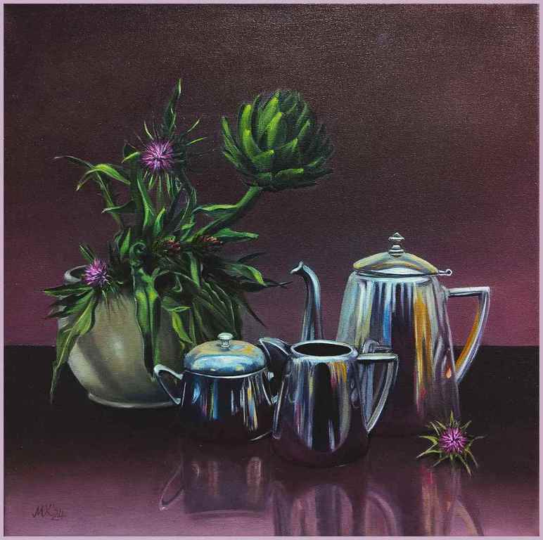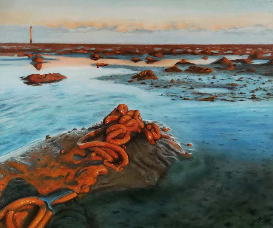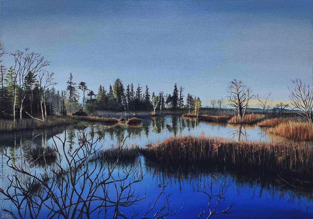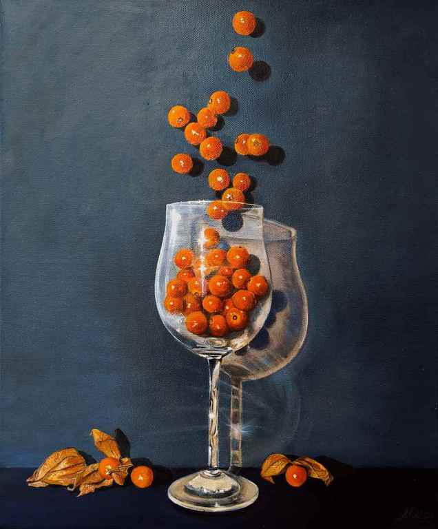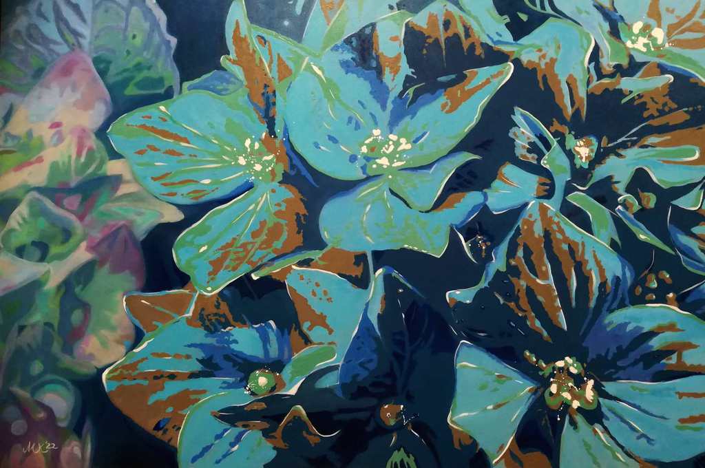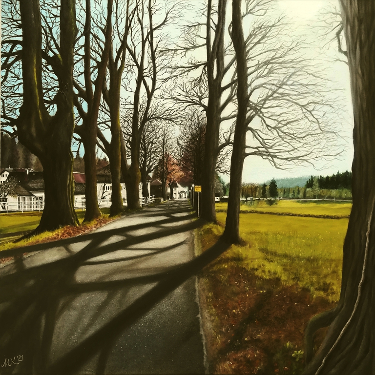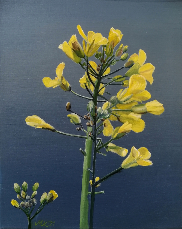 Die schnell trocknende Acrylfarbe eignet sich gut, um das Motiv lasierend anzulegen und anschließend in gewünschter Intensität mit Ölfarbe herauszuarbeiten.